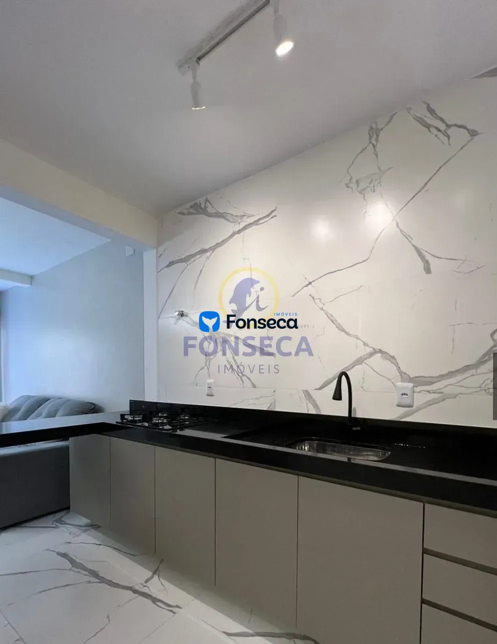 Cozinha integrada com a sala, proporcionando um ambiente moderno e funcional.